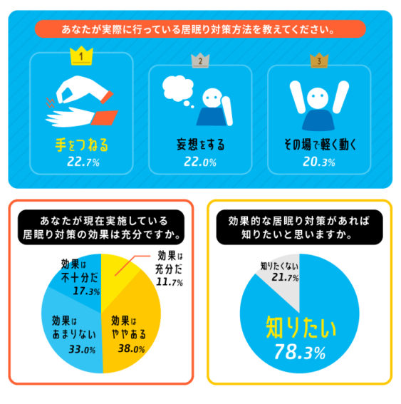 定番の居眠り対策方法第1位は“手をつねる”、次いで“妄想”がランクイン